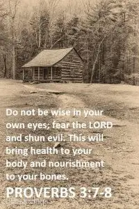 3:7-8 Don’t be wise in your own eyes; fear the LORD and turn away from evil. This will be healing for your body and strengthening for your bones. (Humility and doing right and not wrong is physically healthy)
